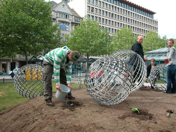 Diese Kürbis-Installation wurde im Sommer 2004 während des Wiesbadener Kunstsommers im Skulpturenpark (d.h. im Wiesbadener Kurpark) neben anderen Kunstwerken aufgestellt. Innerhalb der letzten Wochen haben sich Wiesbadener Bürger in einer Umfrage und die Stadt selbst für den Ankauf / Beibehaltung von Kutschers Kunstwerk entschieden!